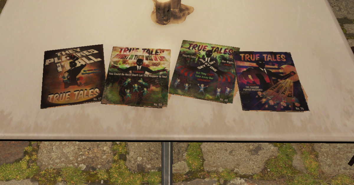 All four True Tales Perk Mags made for Shadows Of The Old World as seen in game.